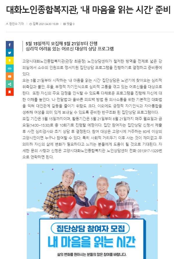 (고양신문) ' 내 마음을 읽는 시간' 준비