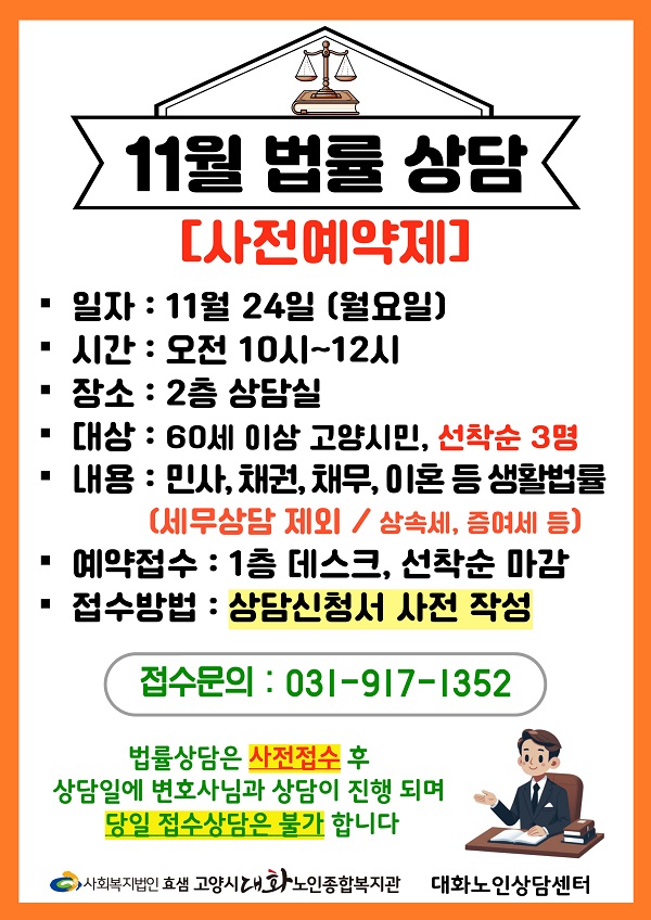 ▸ 대상 : 60세 이상 고양시민, 선착순 3명