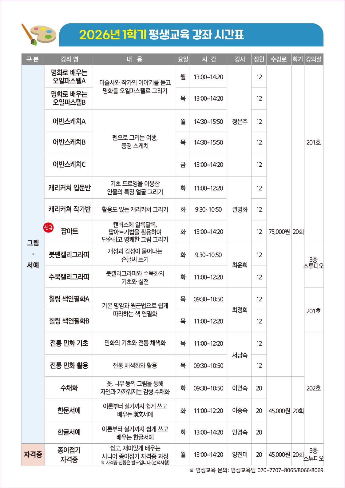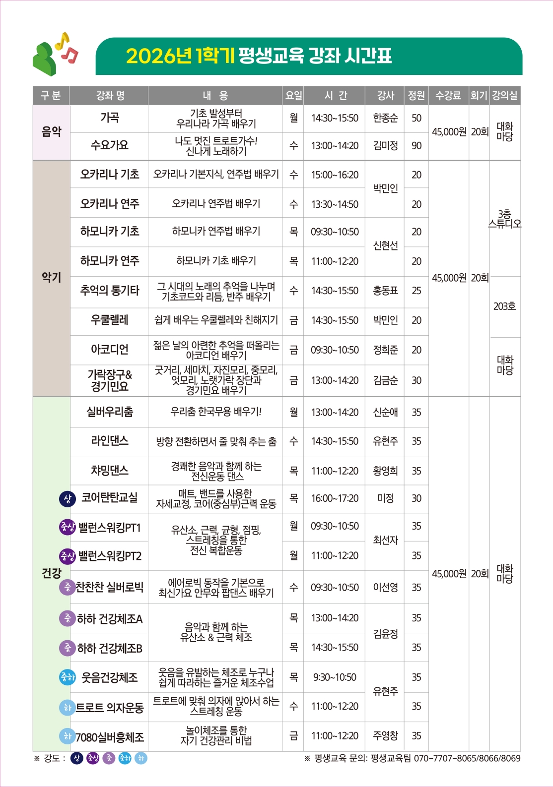 2026년 평생교육 접수 일정 및 프로그램 안내
