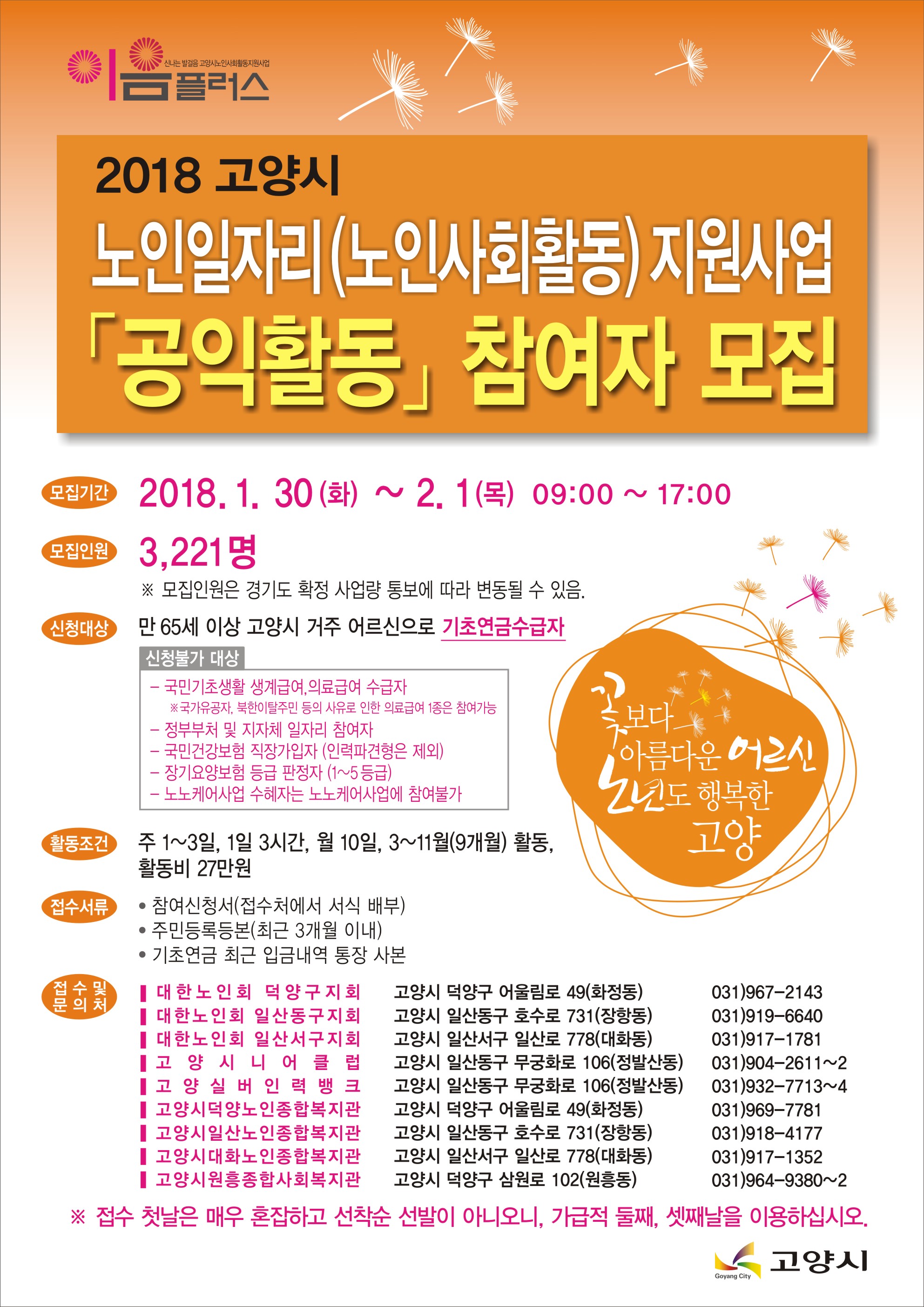 대상 : 만 65세이상 고양시 거주 어르신