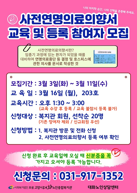 ▶ 내용 : 사전연명의료의향서 교육 및 등록