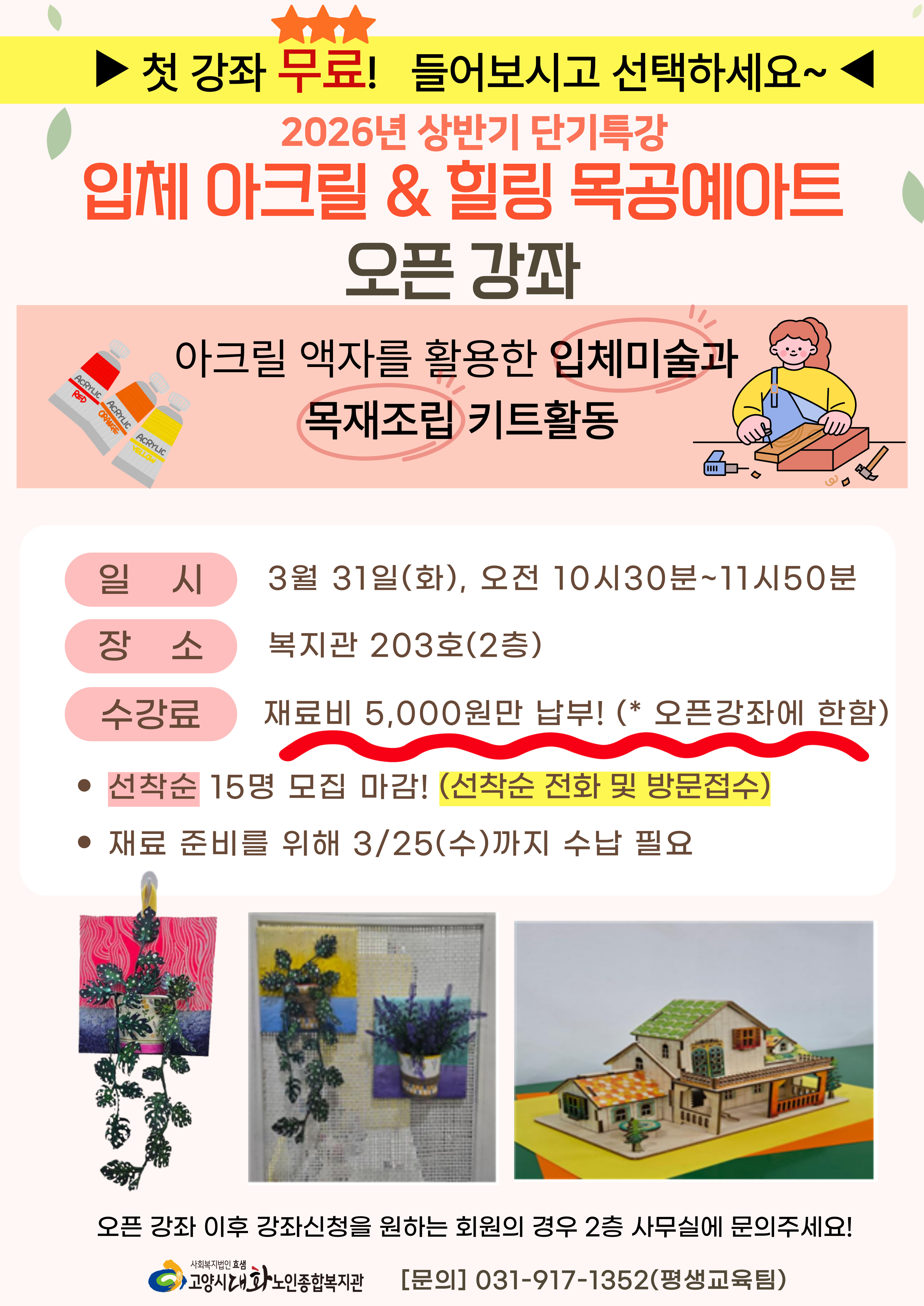 [모집] 평생교육 상반기 단기특강 오픈강좌 안내(입체 아크릴&목공예 아트)